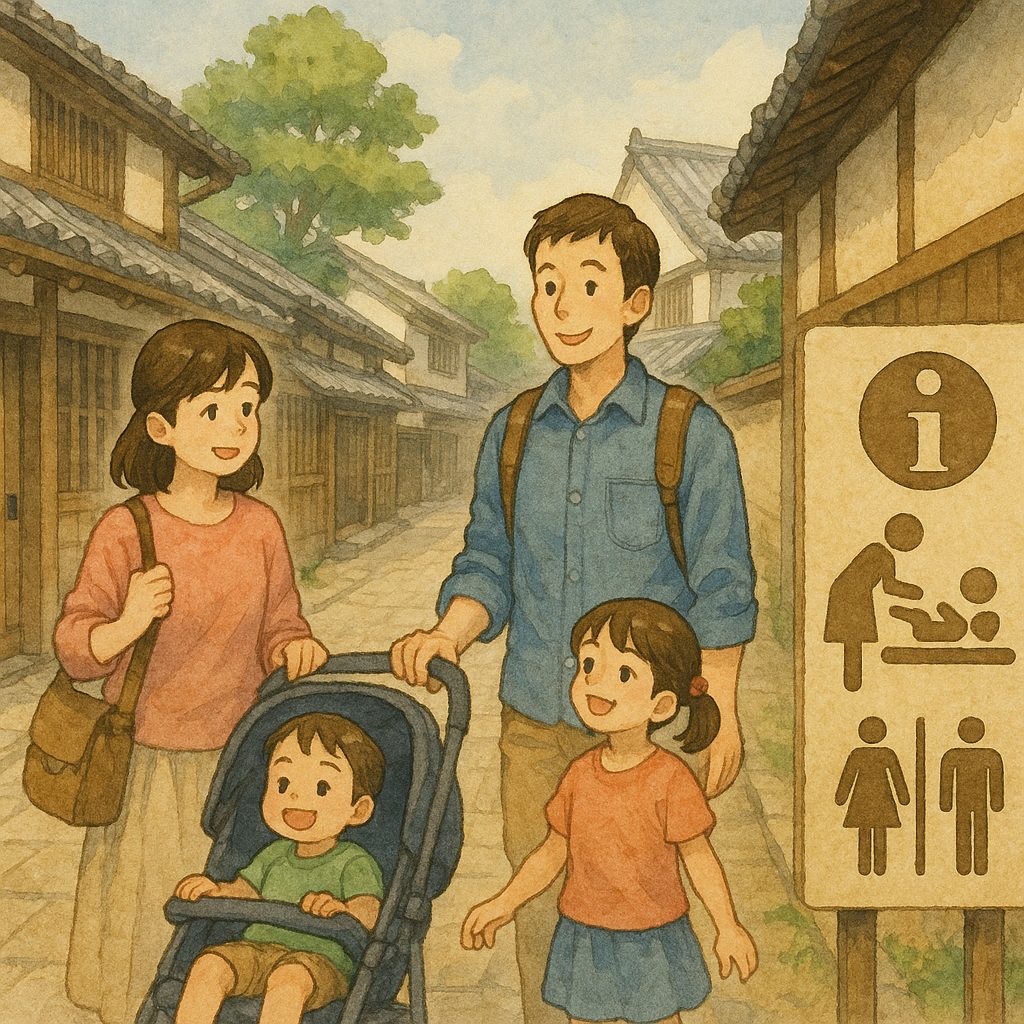 周辺の観光エリアには多目的トイレや授乳室を備えた施設も点在しているため、子ども連れでも無理なく観光ができます。