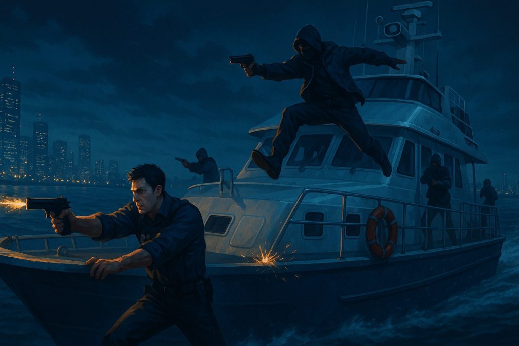 第5話の冒頭から、視聴者の目を釘付けにするのが船上でのアクションシーンです。
