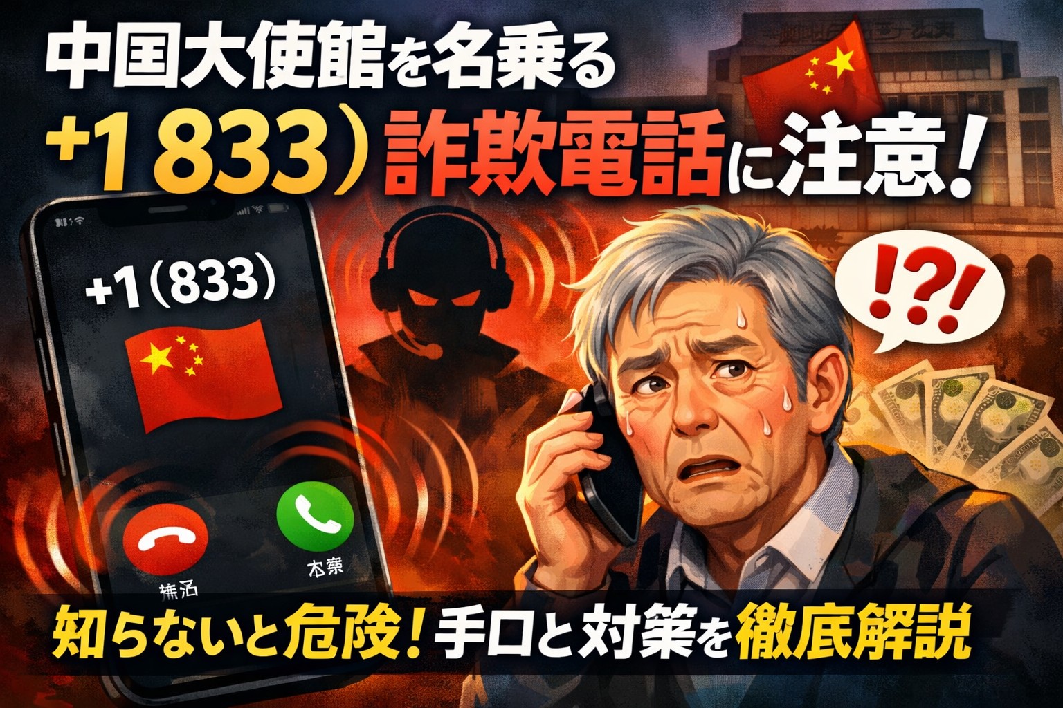 +1 (833) 番号から突然かかってくる「中国大使館」を名乗る電話。