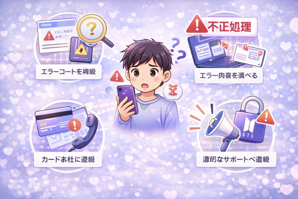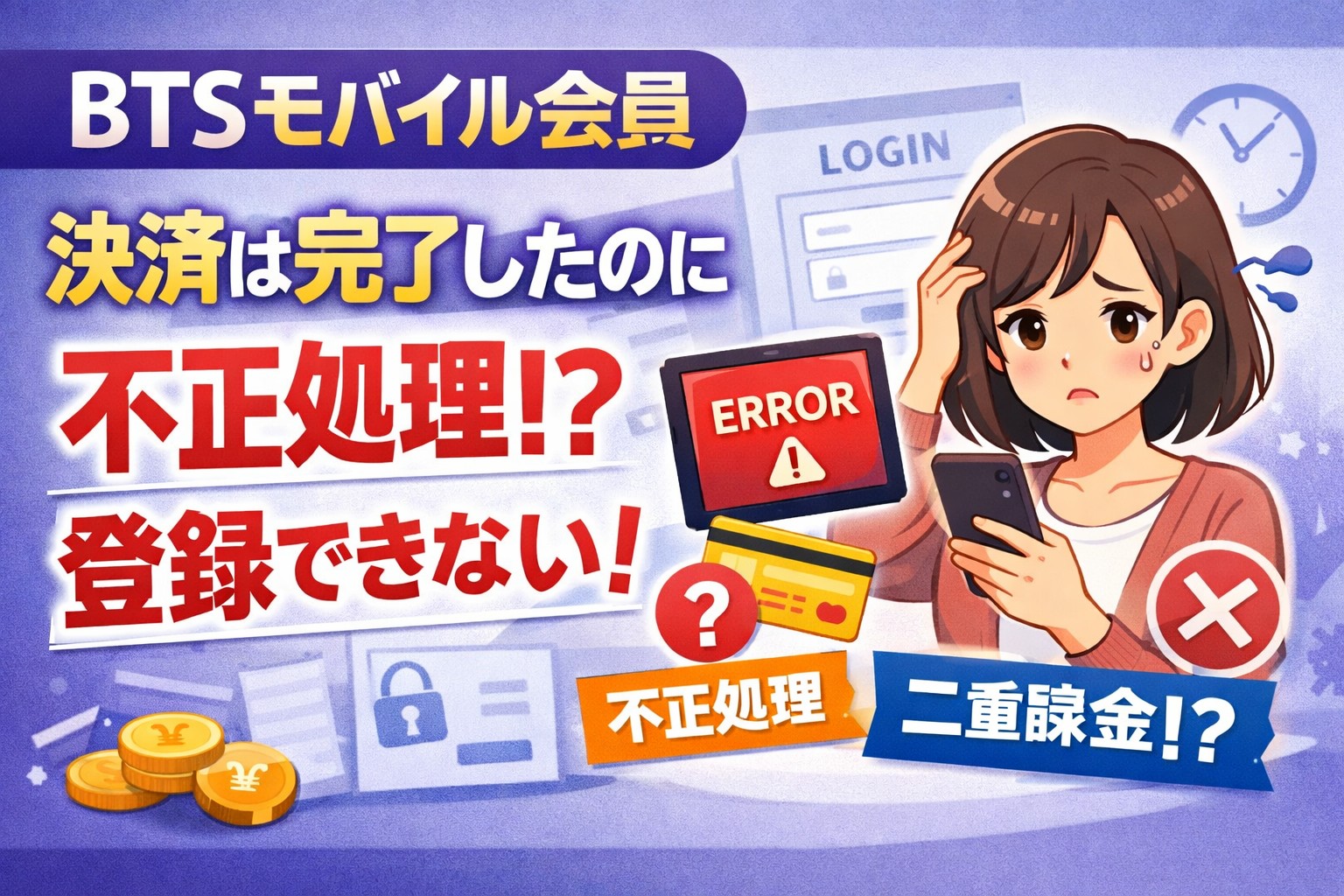 BTSモバイル会員の新規登録で「決済は完了したのに不正処理と表示される」「登録されない」「ログインできない」