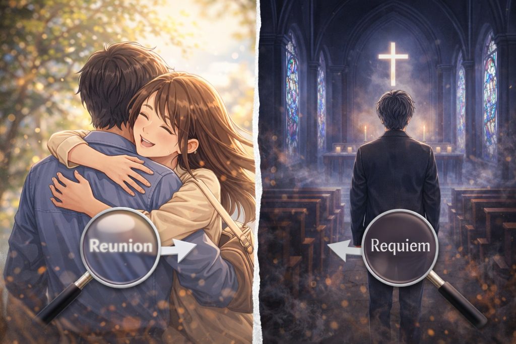 ・ReunionとRequiemで表記が違って見えても、趣旨は同じ方向で、日本語は感情の温度、英語は形式の伝わりやすさを優先した見せ方だと考えると理解しやすいこと。