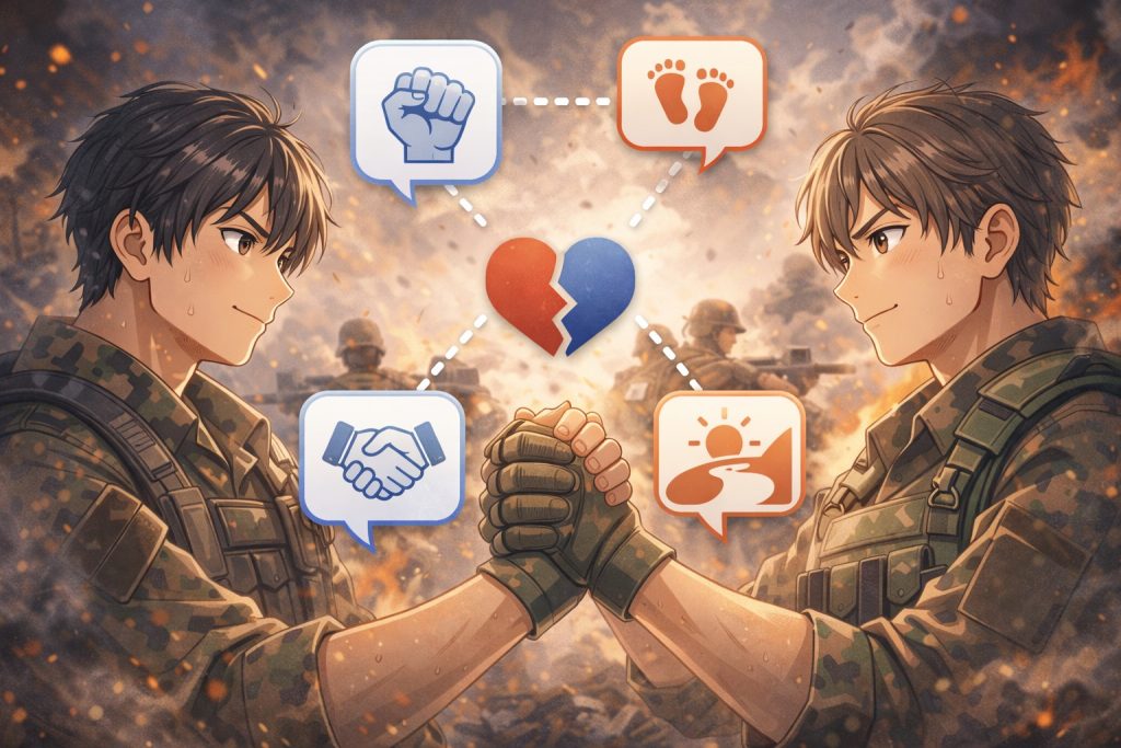次は、「共に戦い歩んだ」という言葉がなぜあの形で響くのかを、表現のニュアンスから解きほぐしていきます。