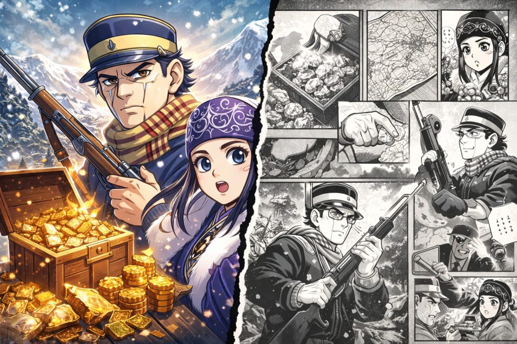 金塊は、杉元一行・第七師団・土方一派が命がけで奪い合う目的物です。