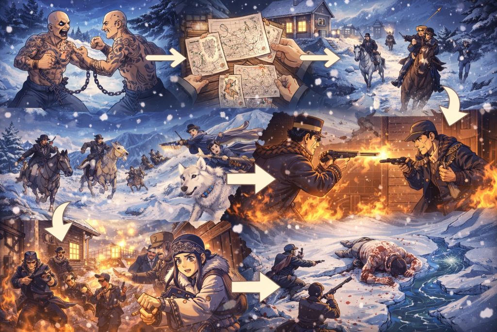 ここからはネタバレ込みで、刺青囚人争奪編の流れを時系列でまとめます。