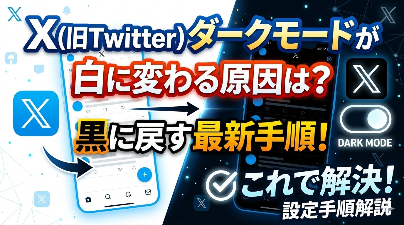 この記事では、そんなモヤモヤをできるだけスッキリさせるために、X(旧Twitter) ダークモードが白になった理由から、黒に戻す最新手順までわかりやすくまとめました。