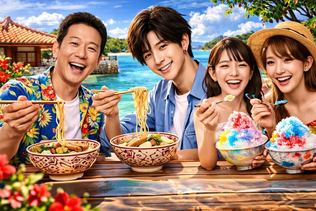番組内では、沖縄のソウルフードとして親しまれている沖縄そばに加えて、見た目のインパクトも強い進化系かき氷などが登場しています。