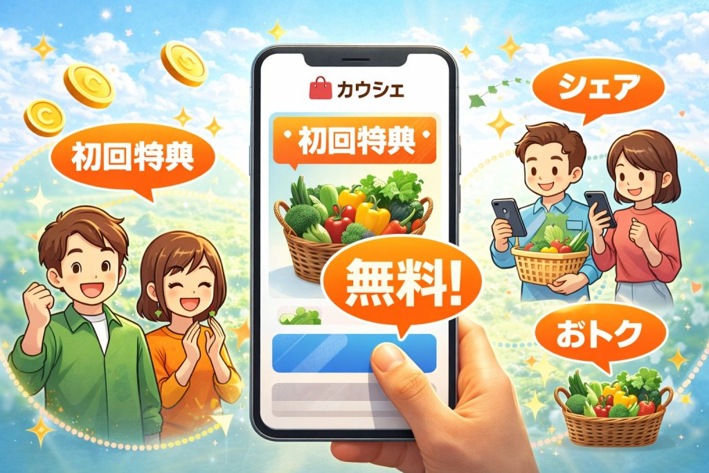 カウシェの野菜は無料でもらえる?初回特典や仕組みを詳しく紹介!