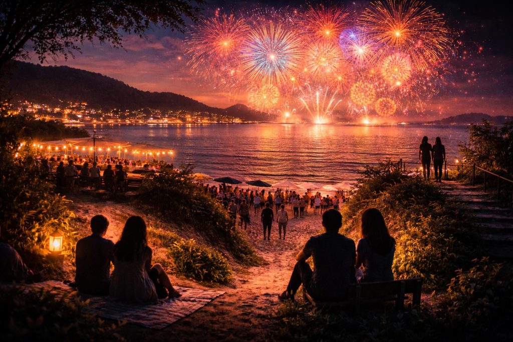 海辺で見る花火らしい特別感を味わいたい人には、かなり相性のいい大会だと思います。