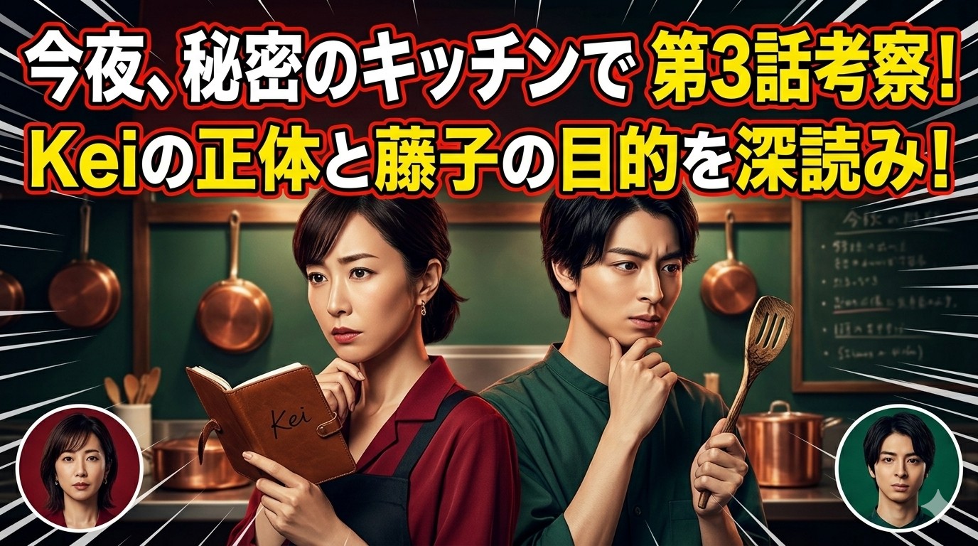 この記事では、今夜、秘密のキッチンで 第3話 考察として、Keiの正体と藤子の目的を中心に、あゆみの変化や料理シーンに込められた意味までわかりやすく整理しています。